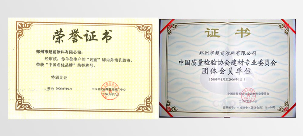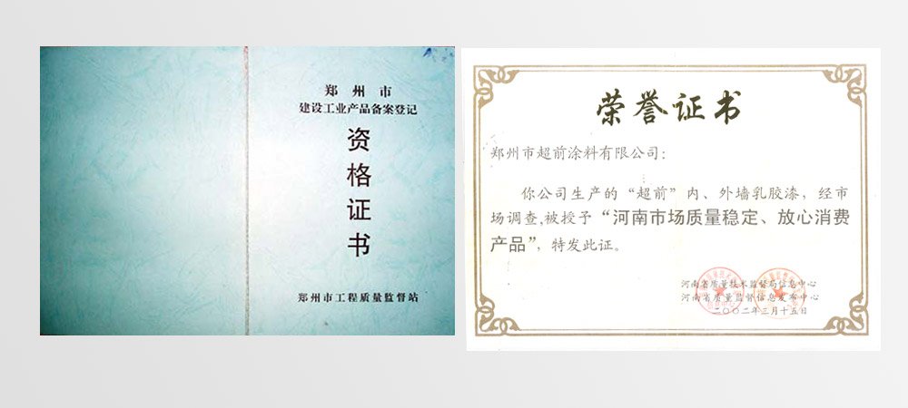 • 2002年評為“國家質(zhì)檢合格建材綠色環(huán)保產(chǎn)品”、 “河南市場質(zhì)量穩(wěn)定、放心消費產(chǎn)品”