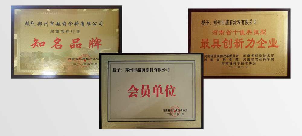 • 2013年榮獲河南省十佳科技型最具創(chuàng)新力企業(yè)、“河南涂料行業(yè)知名品牌”,并加入“河南省輕工業(yè)行業(yè)協(xié)會”